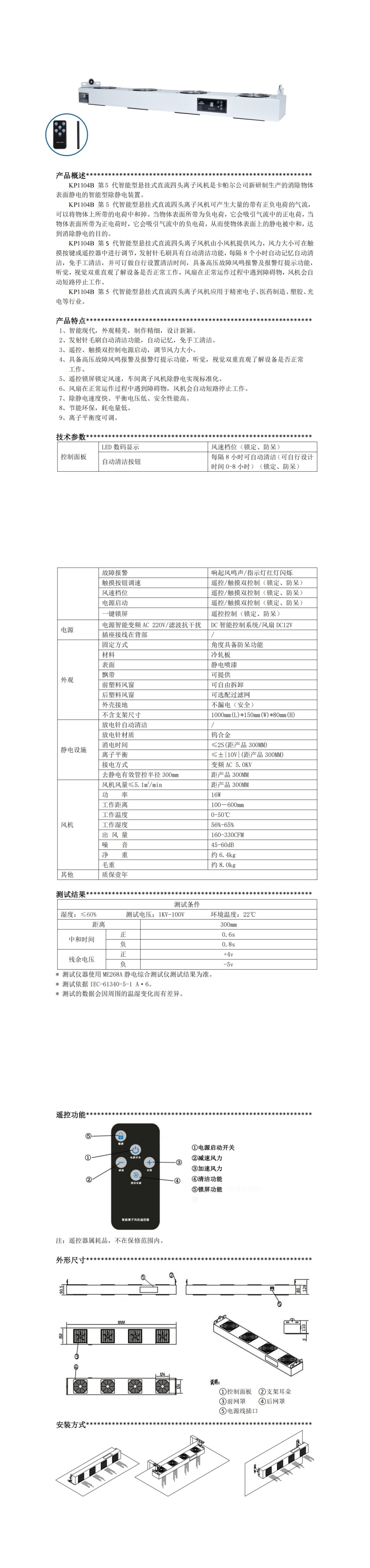 KP1104B 第 5 代智能型悬挂式直流四头离子风机